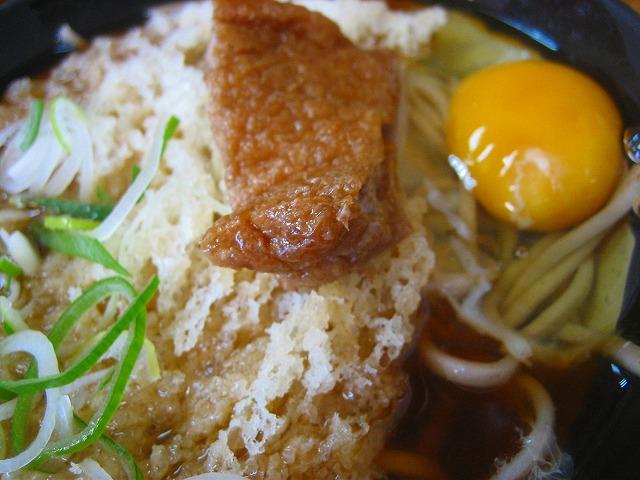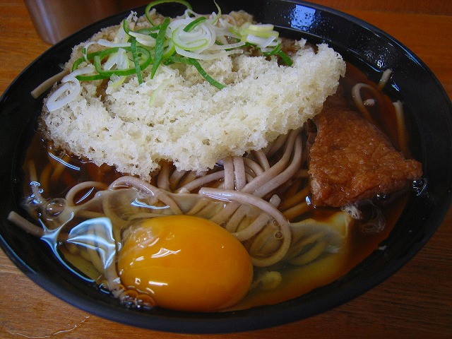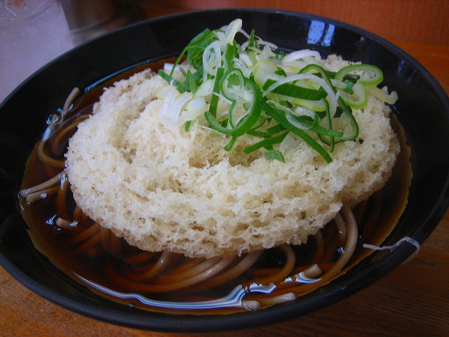 ころもだけの天ぷらですが、大きくてつゆに混ざりやすく、懐かしく美味しいです。