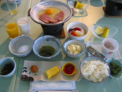自分で焼く目玉焼きとウインナーが美味しかったです。