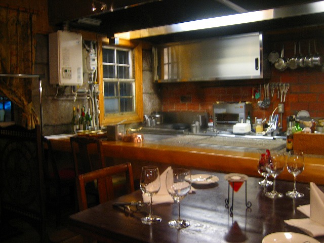 店内はオープンキッチンとなっており、気さくなシェフとの会話も自然な感じで私の苦手な肩肘張るかしこまった感じでなく、カジュアルな雰囲気で、料理を楽しめました。