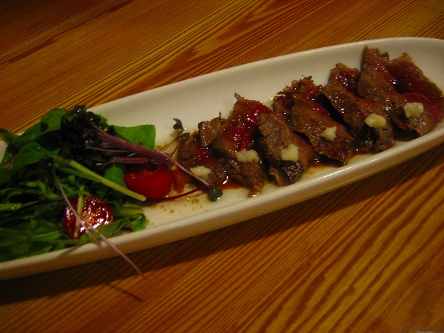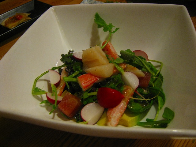 海鮮サラダとラムロースのたたきです。