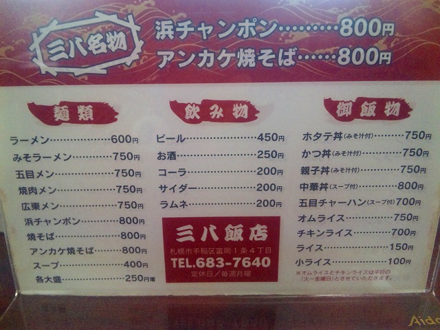 店 名:三八飯店札幌店