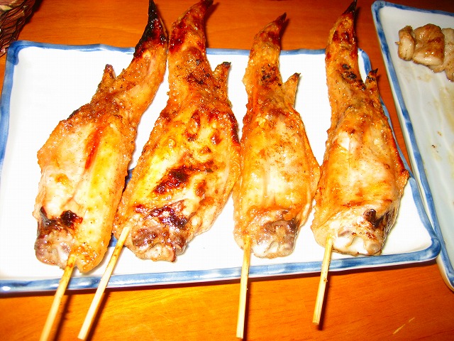 手羽先はまっすぐ串に刺さっています。