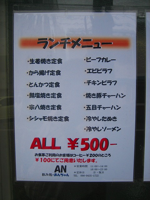 ランチメニューALL¥500!