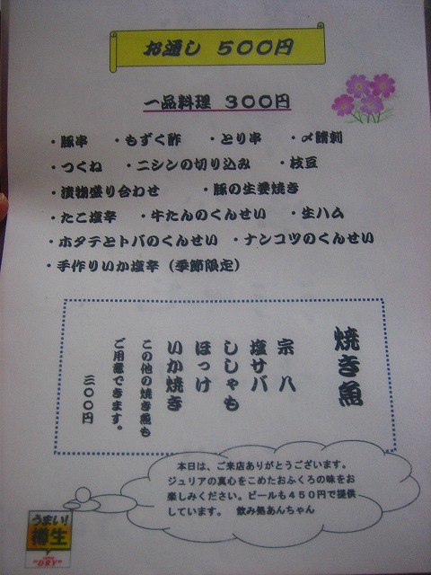 一品料理¥300!焼酎ボトルが¥1500!