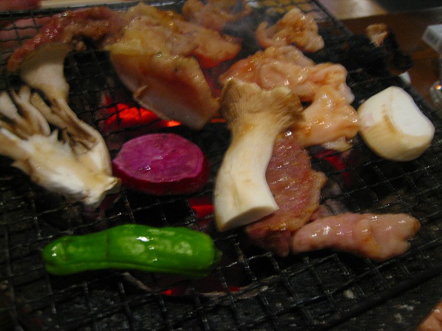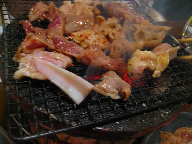 七輪で焼きます。お客さんでいっぱいになると煙はモクモクです。
