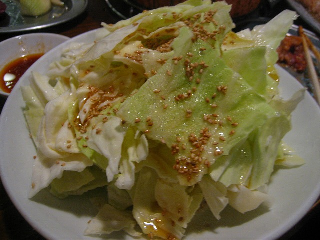 どっさりキヤベツです。ごまとオリジナルなタレがかけられています。