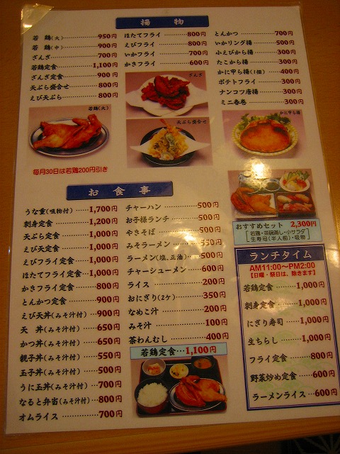 若鶏だけでなく、寿司から麺類までありますね!。