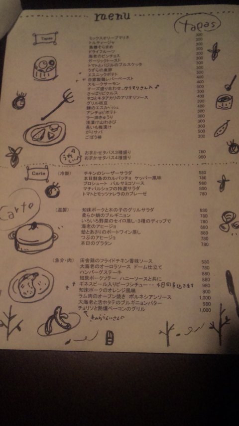 まずはメニューから