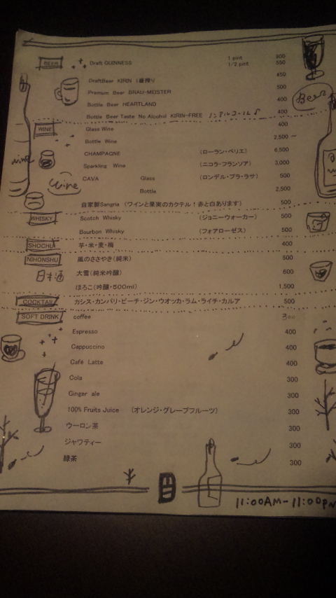 内されメニューを見ます。