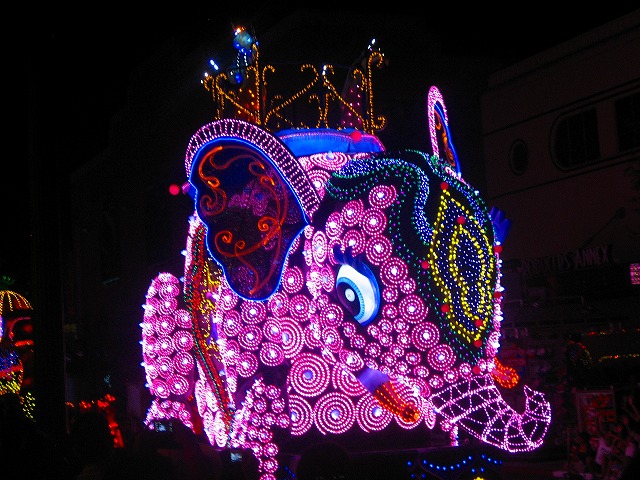 前回来たときは、夜はガラガラだった記憶があったおですが、さすがに夜のパレードがあると夜も人で一杯です。