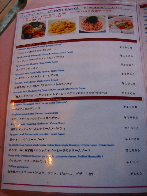 ランチパスタは、ドリンク付きで大盛りがサービスです。