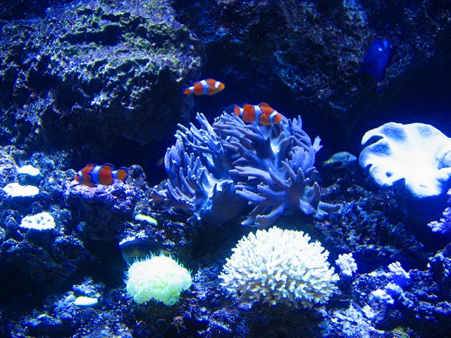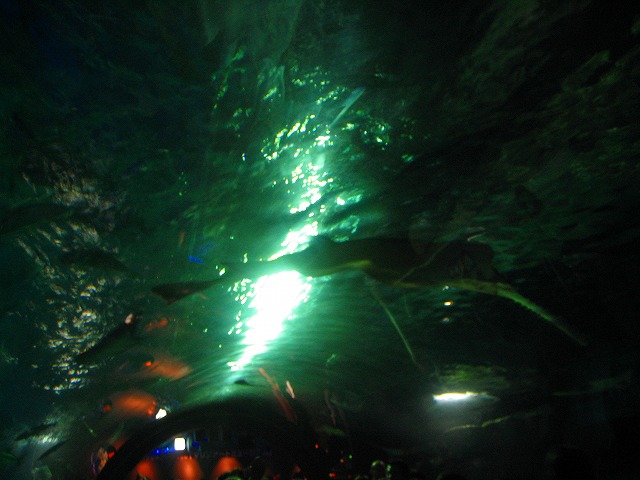 水中トンネルで、エイなどを見たり、熱帯魚の水槽を見たりできます。