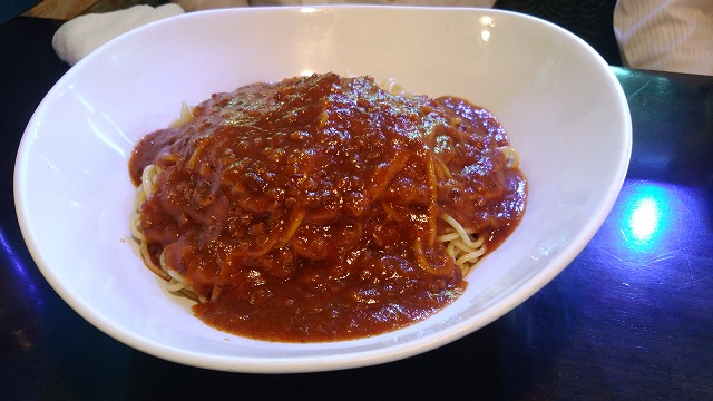 ミートスパです。画像では少なそうに見えますが、器が大きいです。