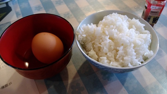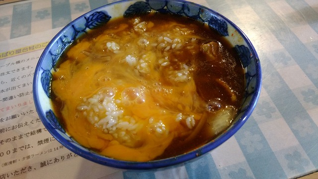 生卵ご飯を投入して、カレー雑炊です。