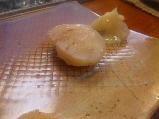 ホタテです。見て解るでしょうか?。表面を軽く炙ってます。