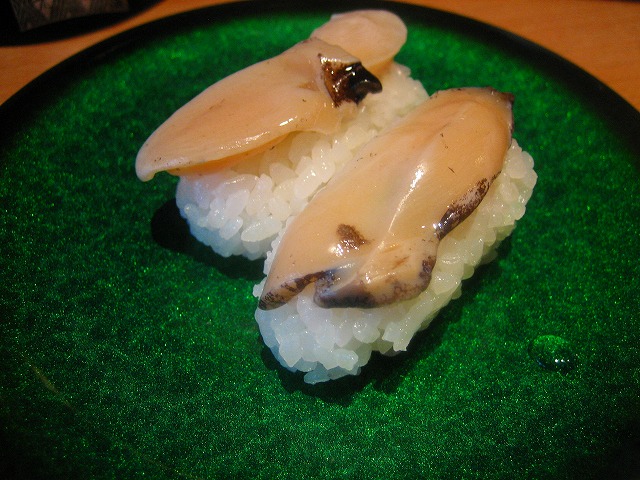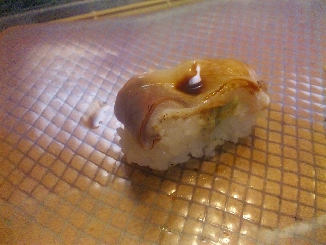 ホッキですが、側を軽く炙り、煮きり醤油が塗られています。