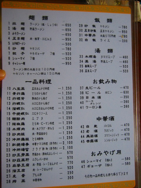 店 名:中華料理五香飯店(ウーシャンハンテン)
