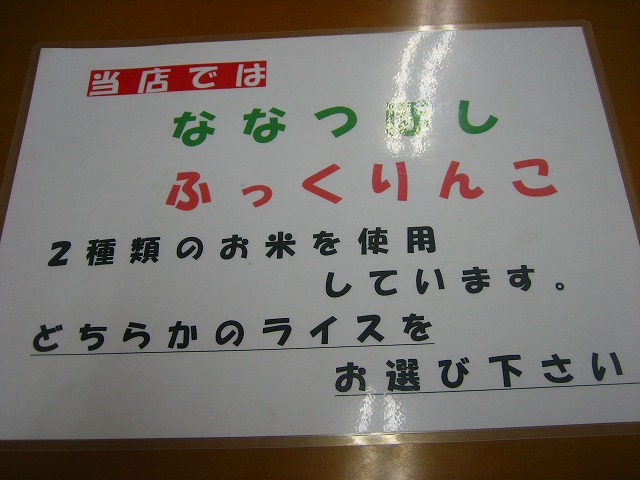 ライスは、地元で採れたお米のななつぼしとふっくりんこの2種類から