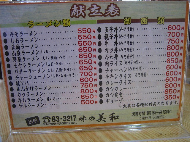 店 名:味の美和