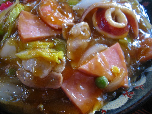 野菜にイカ、エビ、ハムなどが入りボリュームいっぱいです。