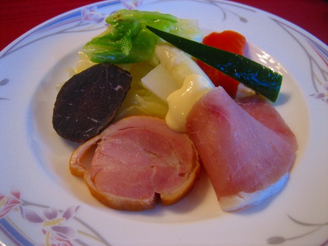オードブルですが、手作りハムと鹿の燻製がとても美味しいです。