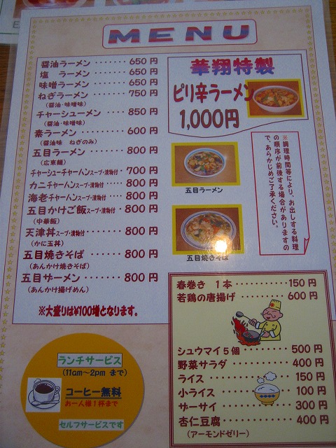 中華料理華翔です。