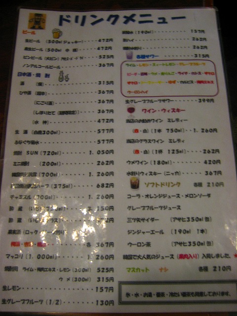 まずはメニューです。