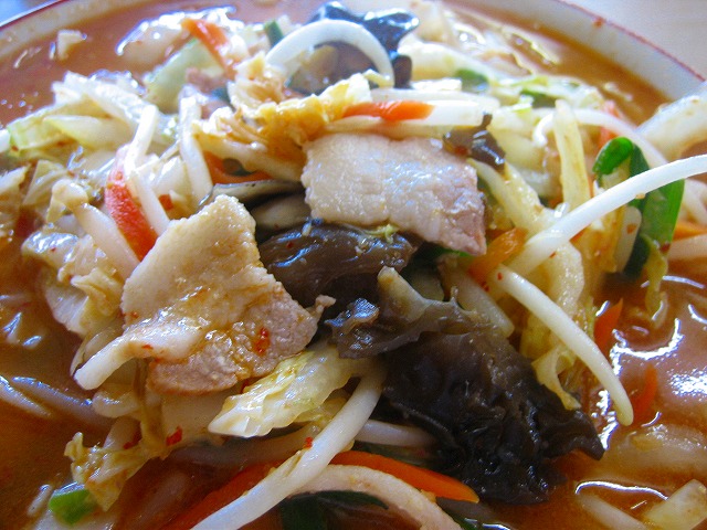 スープは、最初にまろやかな味噌の風味が口に広がり、じんわりと辛