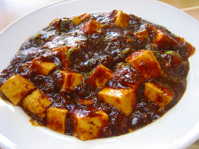 お皿いっぱいのマーボ豆腐です。これで一人分ですよ!。