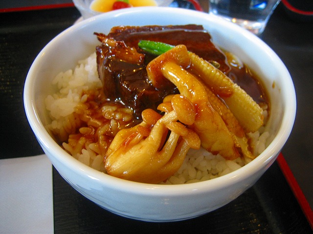 中華の味付けされた豚角煮です。ラーメンはすっきりしたスープです。