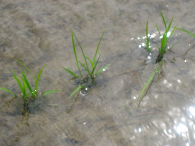 苗も密集したマットの中から解放されたように綺麗な水の中で生き生きして