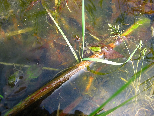 この前いた、沢山のおたまじゃくしがカエルになってましたよ!。