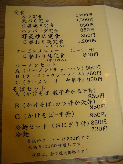 そば、ラーメンから定食類まで、かなりのメニューがありますよ!。