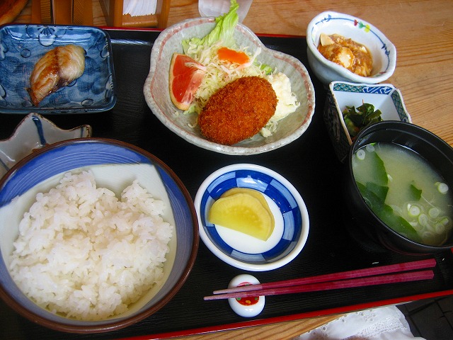 この日は、焼魚とコロッケがメインです。
